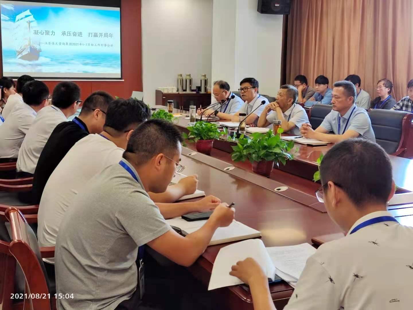 江蘇佳文咨詢集團于8月21日下午,召開集團2021年1-7月份工作形勢分析會,全體員工參加會議。本次會議主題為“凝心聚力、承壓奮進、打贏開局年”,會議由總經理包平主持,公司主要領導在會上作重要講話。
