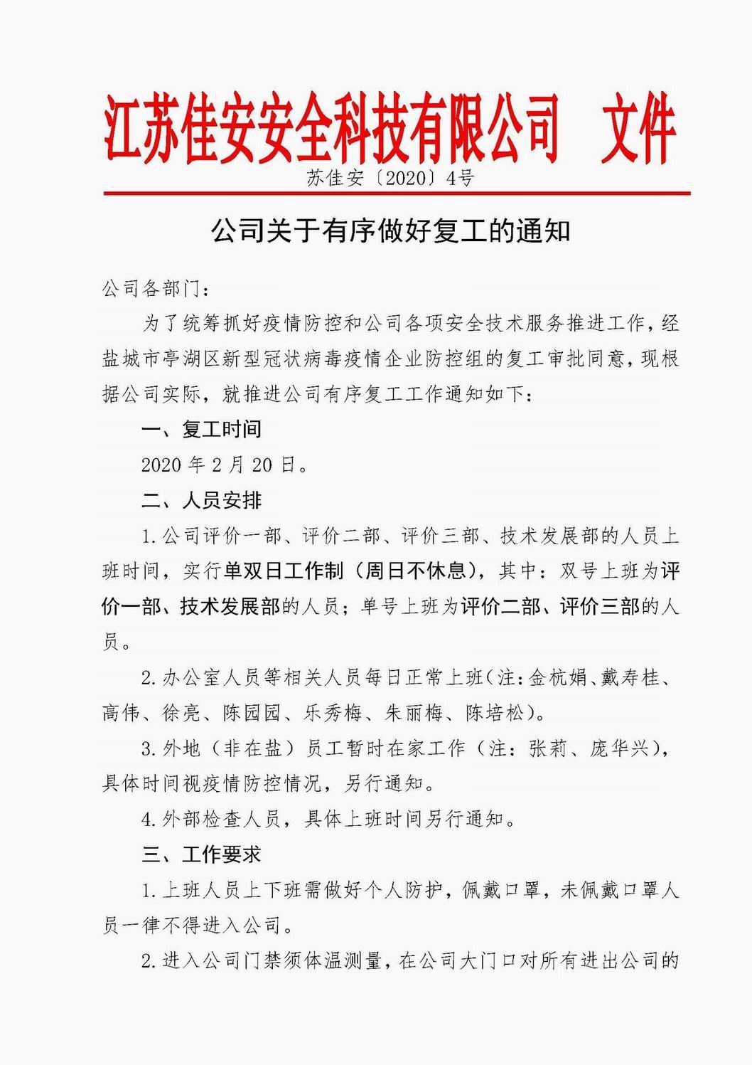 公司關于有序做好復工的通知