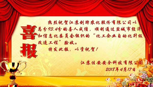 熱烈祝賀江蘇劍牌農化股份有限公司順利通過自動化升級改造工程驗收