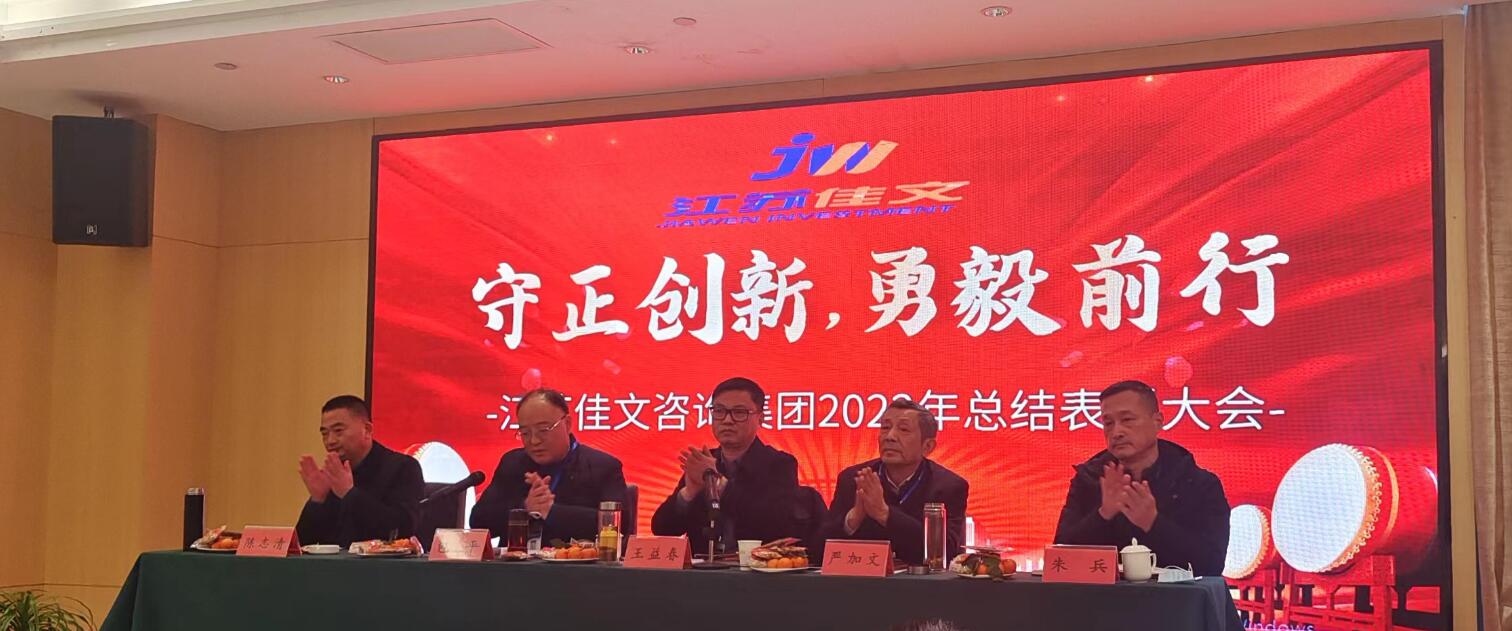2023年1月18日下午,江蘇佳文咨詢集團在博奧賓館嘉會廳召開了2022年度工作總結暨表彰大會。主題是“守正創新 勇毅前行2023”。集團總經理王益春作“守正創新 勇毅前行2023”工作報告,集團董事長嚴加文圍繞會議主題提出具體要求,會議由集團副總包平主持。