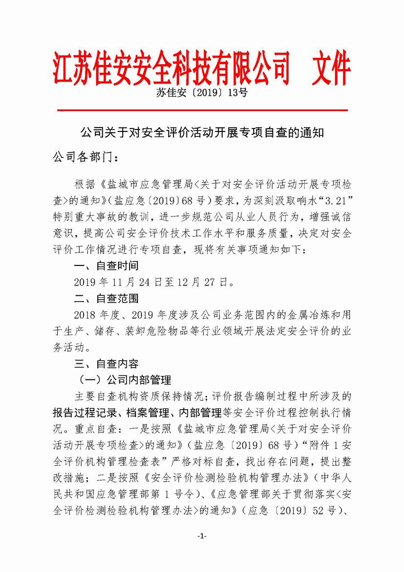 公司關(guān)于對安全評價活動開展專項自查的通知