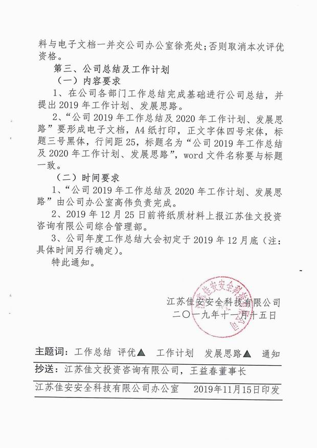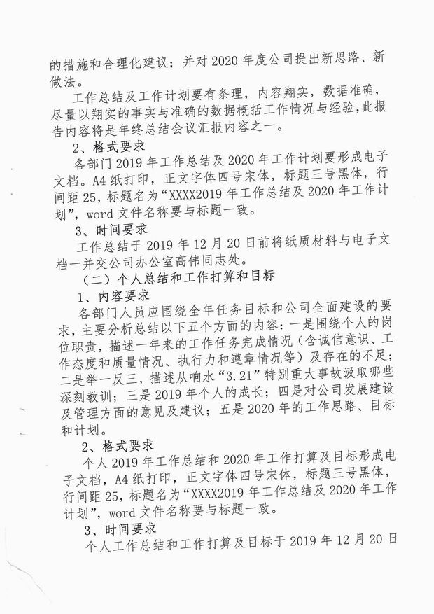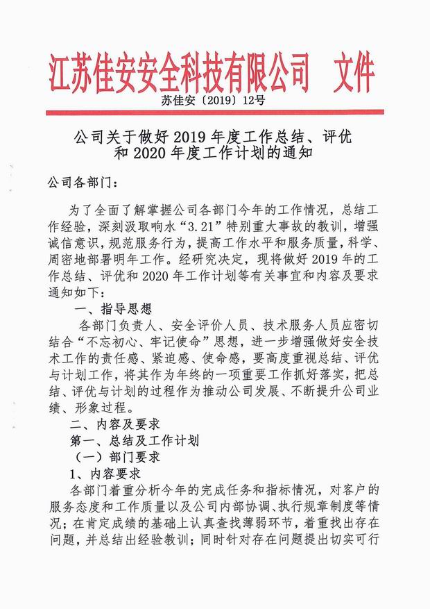 公司關于做好2019年度工作總結、評優和2020年度工作計劃的通知