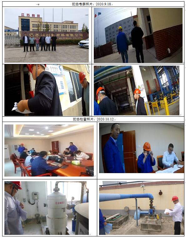 JSJA-20200080 | 江蘇科利新材料有限公司50000t/a氯化聚乙烯(CPE)、2000t/a三烯丙基異三聚氰酸酯(TAIC)、2000t/a三聚氰酸三烯丙酯(TAC)、5000t/aN-苯基馬來酰亞胺(N-PMI)生產項目安全現狀評價(換證) | 第 一類4(b) | 資料齊全后30天完成 | 夏國干、王彪 | 2020年10月10日 |